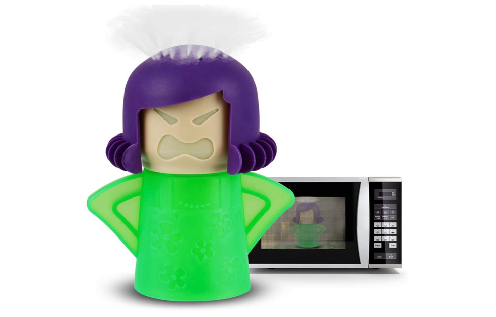 Be honest: when you see a dirty microwave at a restaurant or friend's house, you're probably like "ew." So why not take pride in having a clean microwave by using this angry mama? Just fill her up with vinegar, water, and lemon juice, then pop her inside for about 5 minutes — all that baked-on crud will now easily wipe away with a paper towel.