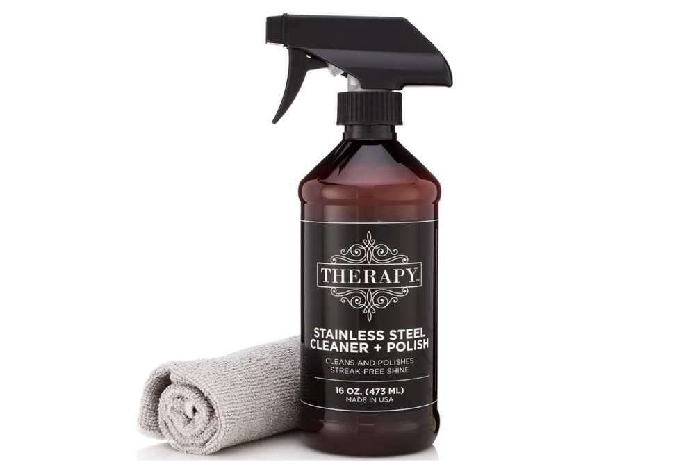 Most household cleaning sprays don't work on stainless steel — I'm literally looking at my fridge right now and it's littered with streaks. That's why I'm currently waiting for my order of this cleaning spray to arrive. I picked this spray over others because it's formulated with plant-based ingredients, and you get a microfiber cloth with each order so that you don't have to waste any paper towels.