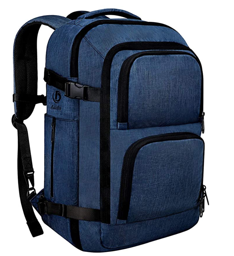 No matter how old you are, you need a good backpack like this one when you're traveling — gotta make the most of that free "personal item" they let you have, right? This one as a separate compartment that fits laptops up to 15.6 inches, and there are even straps on the back that let me secure it to my luggage handle when extended.