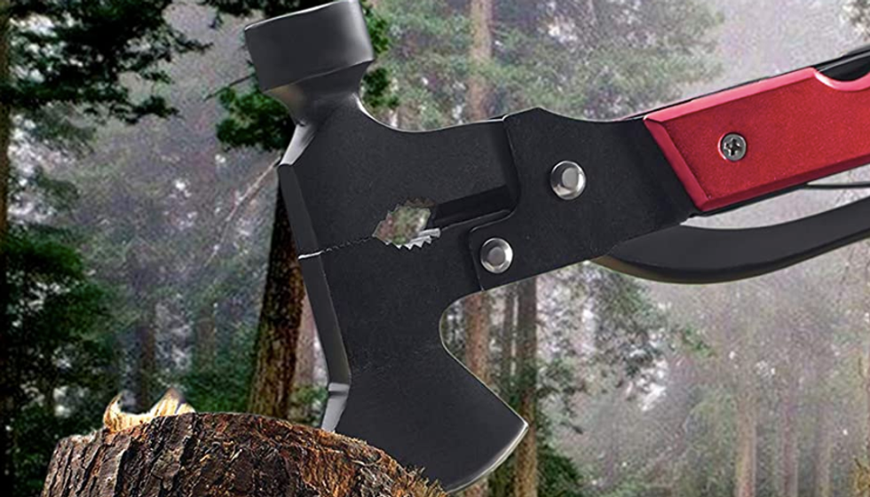 This multitool is a hammer, a small axe, a bolt tightener, and more. Throw it in your backpack for a camping trip, or just grab it whenever something miscellaneous needs to be secured around your home.
