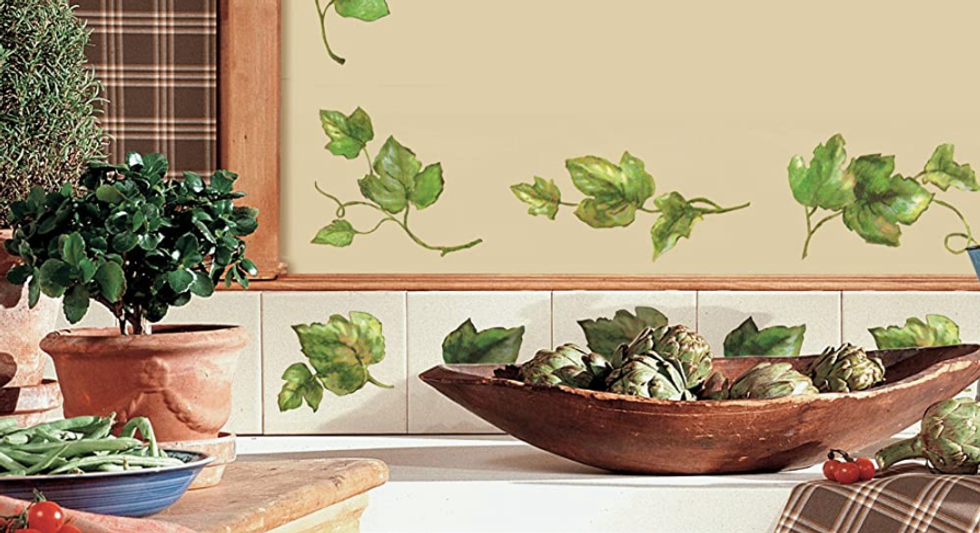 You may not be able to paint leaves on your kitchen cabinets, but you can easily slap on these leaf wall decals for a splash of decor.