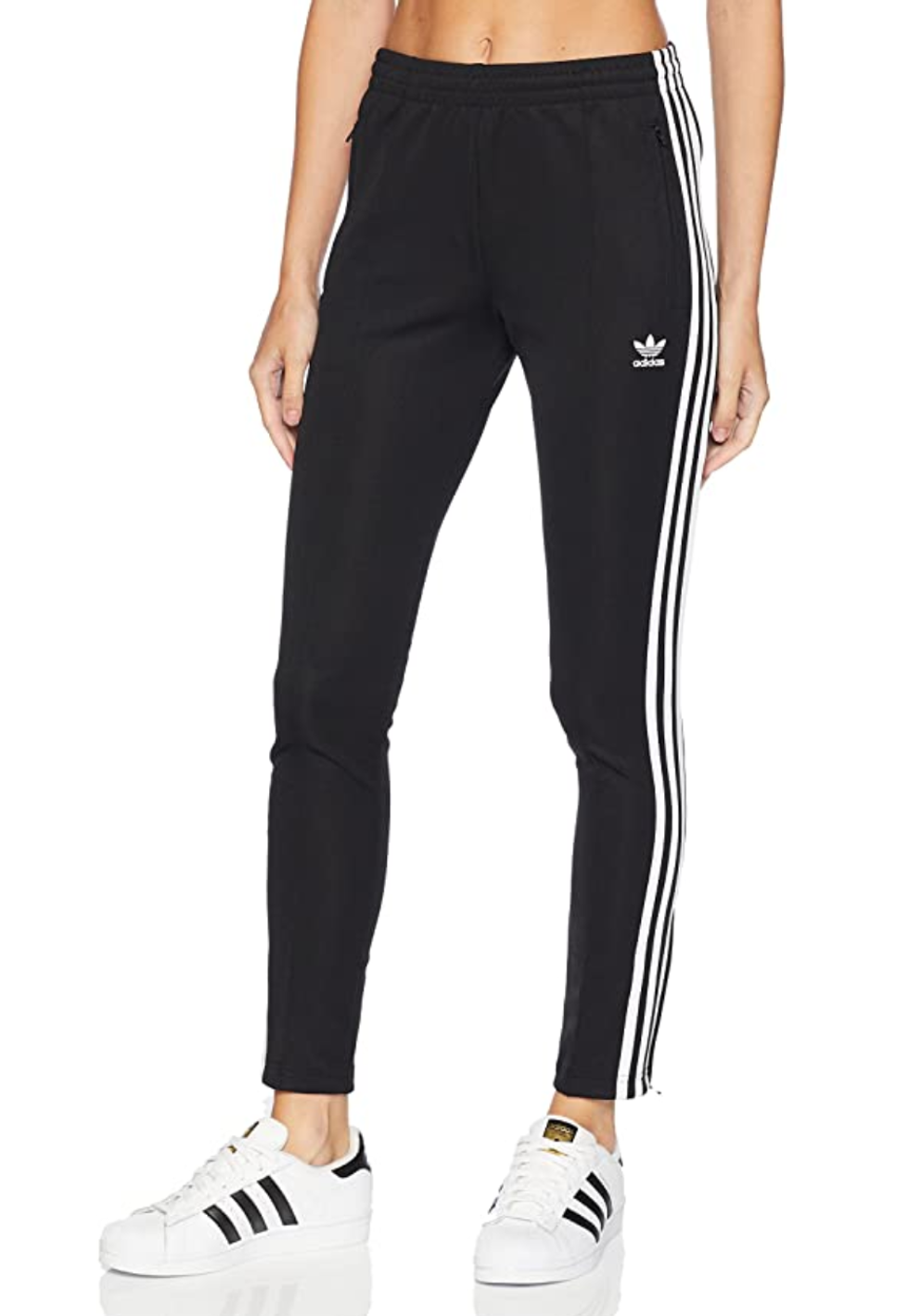 Track pants are so comfortable, but they can be really stylish, too. Case in point: these Adidas ones with a tapered leg so they don't look shapeless and baggy. They come in some bright colors and some tamer ones — I like the classic black to go with all my gym clothes.