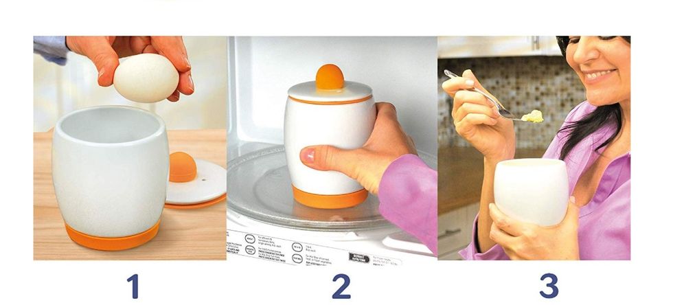 I eat eggs for breakfast several days a week, so I'm always seeking new ways to prepare them. This ceramic egg cooker looks like a fun method. Just crack up to 4 eggs directly into the container, whisk with a fork, then pop on the lid and microwave. The ceramic bowl absorbs and distributes heat, which helps the eggs cook evenly and quickly. Some reviewers complain that it's hard to clean, but others point out that if you soak the container in water immediately after use, it's not really an issue. I say, it's worth a try!These Adorable Mop Slippers Clean the Floor With Each Shuffle and Step.
