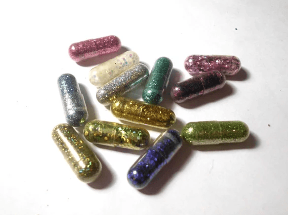 These capsules are made with food-grade glitter. Use them to decorate your bathroom and add a little bit of magic wherever you "go."Trending