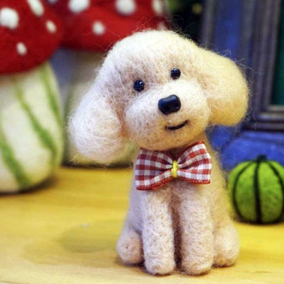 I've done one of these needle felting kits, and it's really fun! Mine made a frog, but this puppy is even cuter. The whole process is super easy, with a step-by-step photo tutorial and videos to help you along. You get wool, needles and a foam pad. Believe it or not, you form the dog by stabbing the wool repeatedly with the needles and shaping it into its final cuddly form. (Just be careful not to stab your own fingers, which I did about 10 times.)