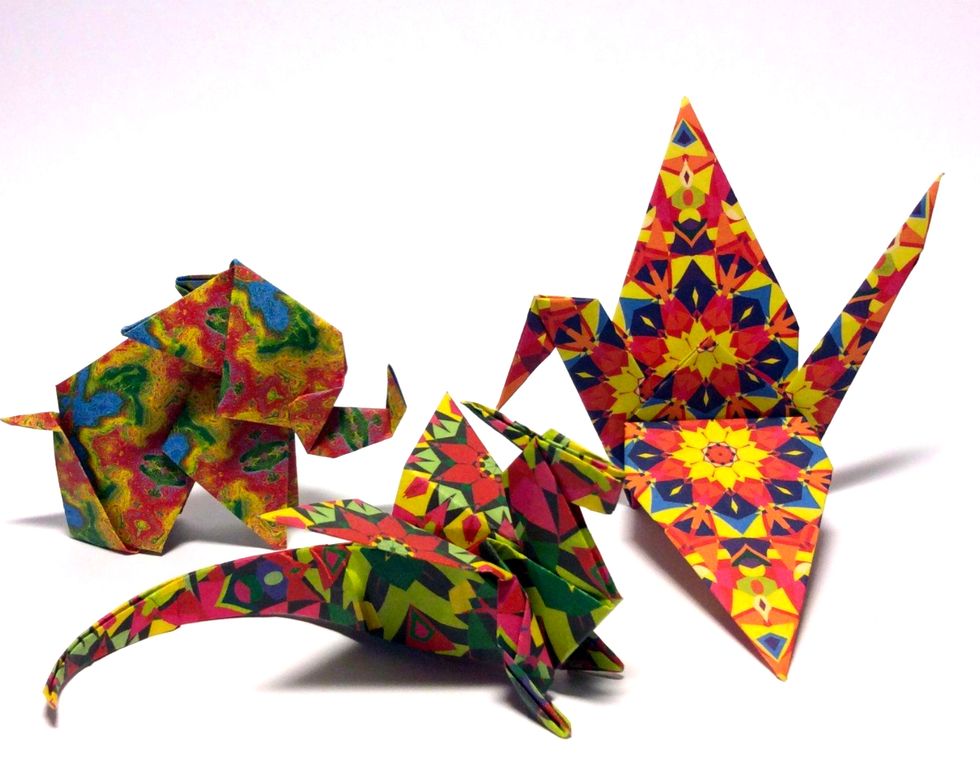 The cool kaleidoscope pattern on this origami paper makes your homemade figures pop
