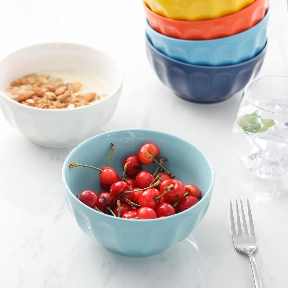 I've used one of these bowls for cereal every day for years and there's no sign of any chipping or cracks, which is more than I can say for our wedding china which is a hot mess after light usage. These sturdy ceramic bowls come in bright or cool colors or classic white, and really stand the test of time. The fluted design makes them easy to hold whether they're filled with hot or cold food, but even if you do drop one it's not likely to chip. Plus they're basically identical to the ones from Anthropologie which I also own, but cost a heck of a lot less!This Knife Set Has Everything You Need