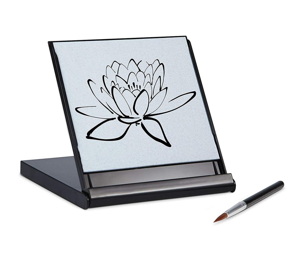 If I had to choose one item to stay on my desk forever (besides my computer), it would be this Zen Artist Board Mini. It allows me to take a few moments out of my day to express myself creatively without making a huge mess. How is that possible, you may ask? Because all you need is water!