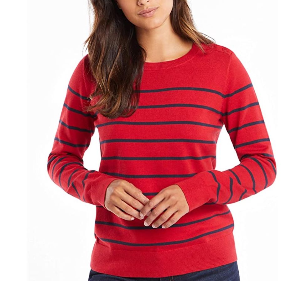 A light sweater is my go-to top for fall and winter, so you might say I'm always on the lookout for a good one that won't shrink, stretch, or lose its shape. Since this striped sweater is made my Nautica, I can be rest assured that none of those things will happen. It comes in a handful of flattering colors and is accented with thin stripes –– my favorite pattern. “ViewThis ZETIY Bandana Face Mask That's Cute And Functional