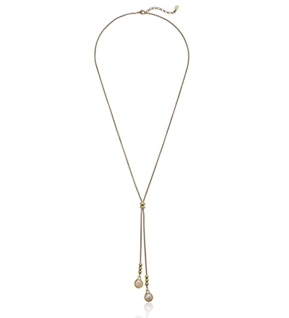 What's a lariat necklace, you say? Well, it's a style of necklace that is kind of shaped like a rope or lasso, that has a pullable adjustment instead of a clasp at the back. And they're becoming more and more popular. This necklace from Lucky can be worn the traditional way, with the charms facing front, or worn backwards to accent a low-back top or dress. You decide. “ViewThese Karen Neuburger Pajamas That Are Good For Cool Nights