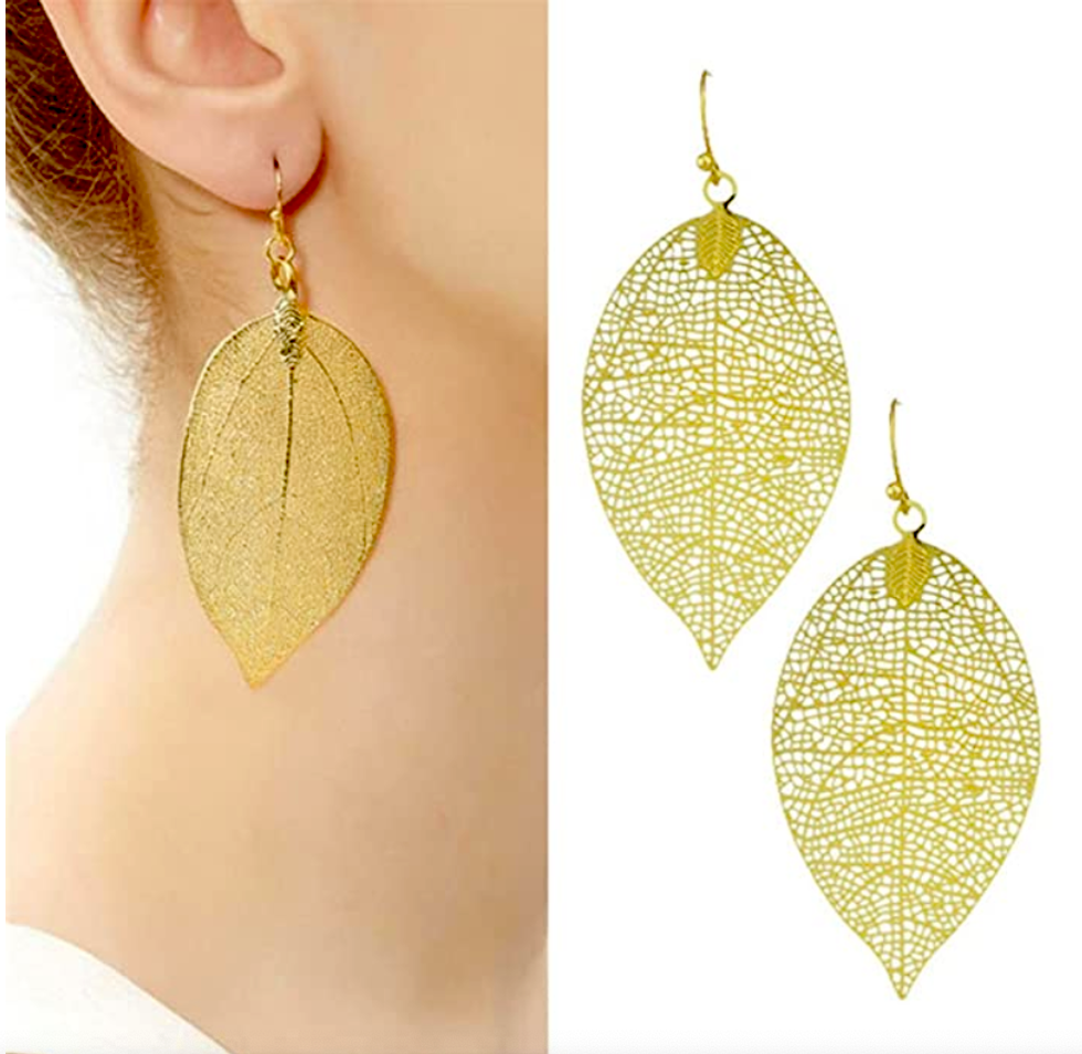 I love statement earrings, but often they're too heavy and pull on my earlobes too much. I don't want to stretch out my ear piercing so usually I'll just go with studs or something little, but with these lightweight earrings I can do dangly ones again! They come in silver or gold and are the most delicate leaf pattern that goes with everything from fancy to casual. Did I mention they're under $3.00? Sold and sold.