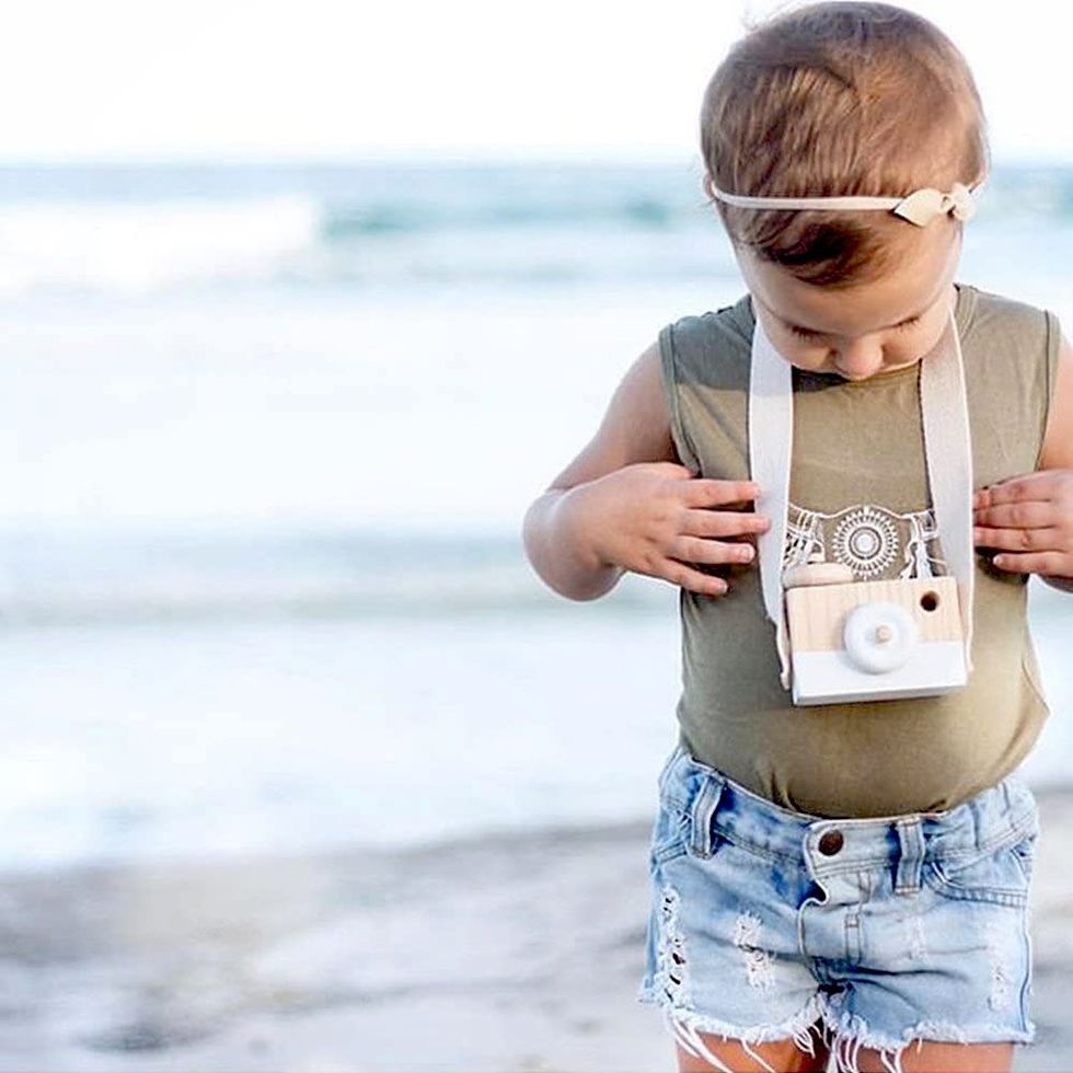 This wooden toy camera reminds me of ones you can get from Montessori toy stores that cost infinitely more money than this little cutie does. It's tastefully done in white and natural light wood tones, and the details like the lens and camera push button are so adorable. It even comes with a little camera strap so the little photog doesn't lose it!