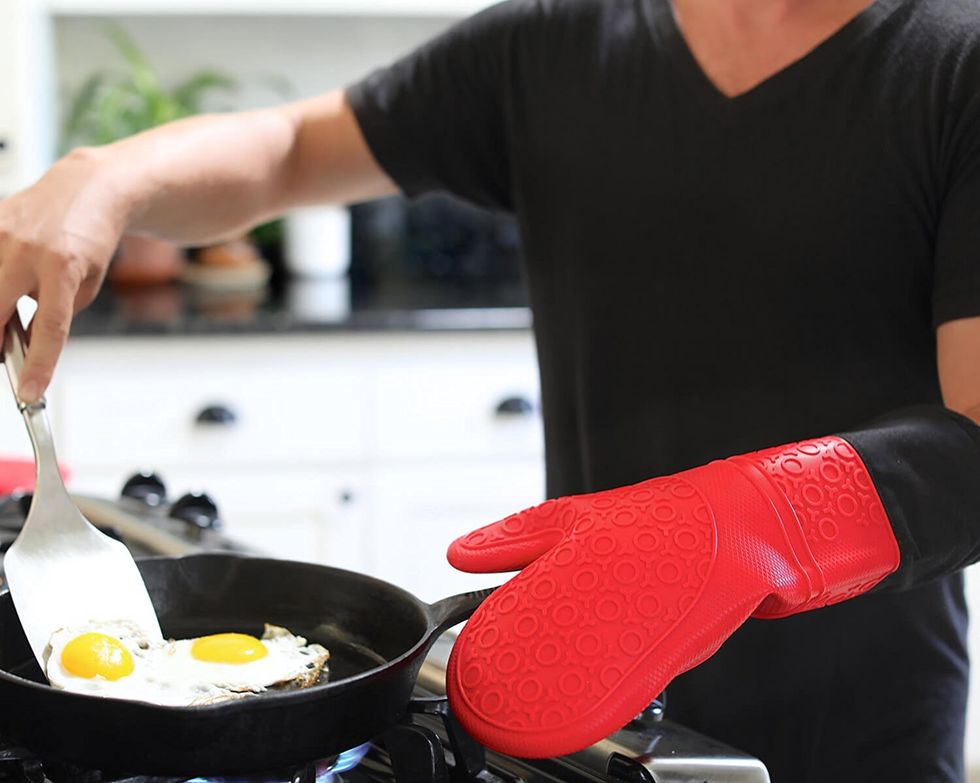 I went for far too long without owning some quality oven mitts, and would instead just use a towel to pull things out of the oven, which is a bad idea. Don't think this is that big of a deal? I have a two-inch scar on my forearm that would disagree. These heavy duty oven mitts are chef quality and extra long for added protection.This Handy Tile That Makes Lost Keys a Thing of the Past