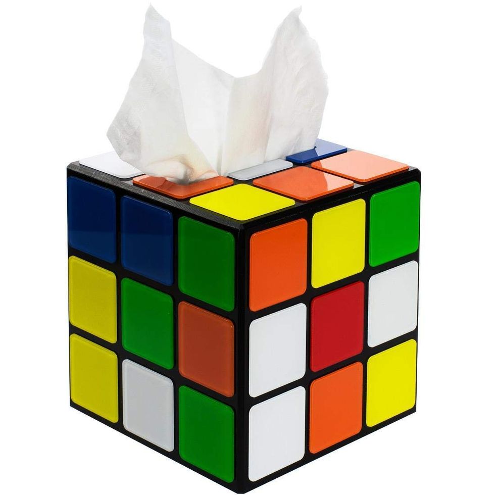 This paw print frame includes air-dry impression material, directions, and a folding frame designed to hold a photo and paw print of a furry friend. It makes a sweet gift for anyone who loves their pet!This Rubik's Cube Tissue Box Cover