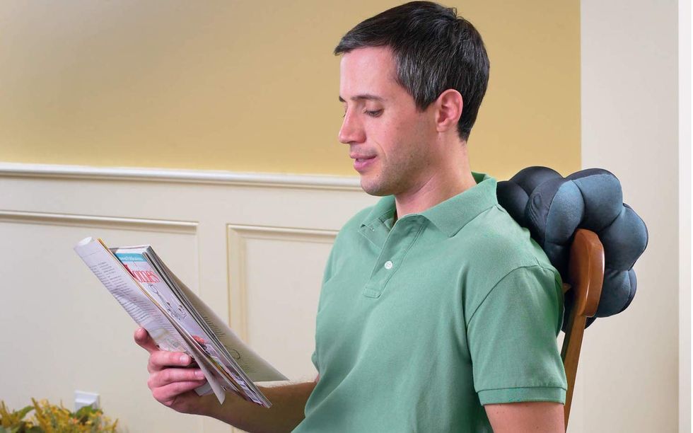 Not everyone has the time or money for regular massages, but we can all still unwind at the end of a hard day. This plush massager uses heat therapy and eight deep-kneading nodes to work out any tension in your back. If your feet ache you, simply unzip the foot muff component and slide your feet in. At 12 by 12 inches, it can accommodate most foot sizes!This Therapy Pillow