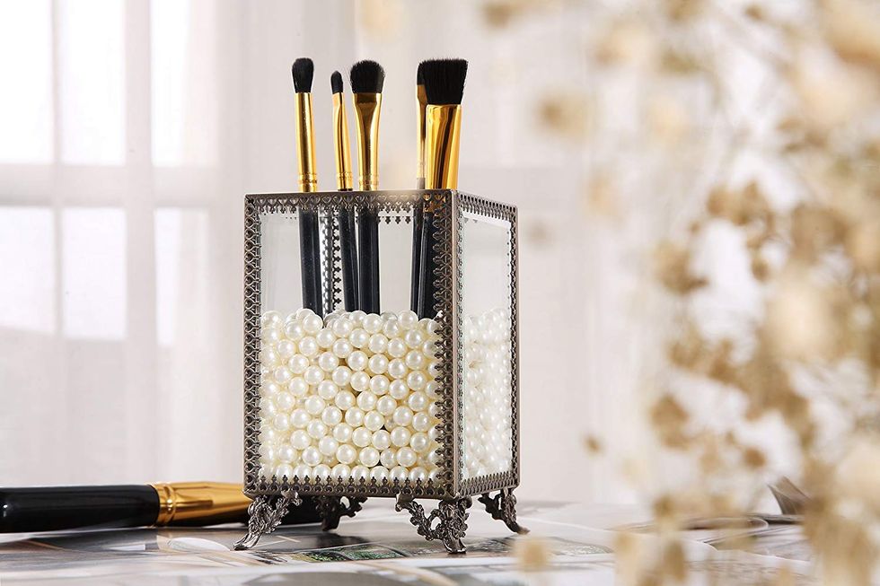 What are your makeup brushes in right now? If the answer is not a bed of pearls, you’re living life wrong. The glass holder is accented with vintage, brushed metal borders and claw feet. The included pearls add a wow factor while also holding your brushes in place and keeping them from getting all clumped together. The holder comfortably holds up to 25 makeup brushes.ThisFluffy Slime