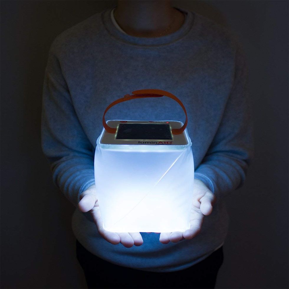 This LuminAID Solar Inflatable Lantern collapses so takes up hardly any space in your pack and is solar powered so you never have to worry about batteries or outlets.