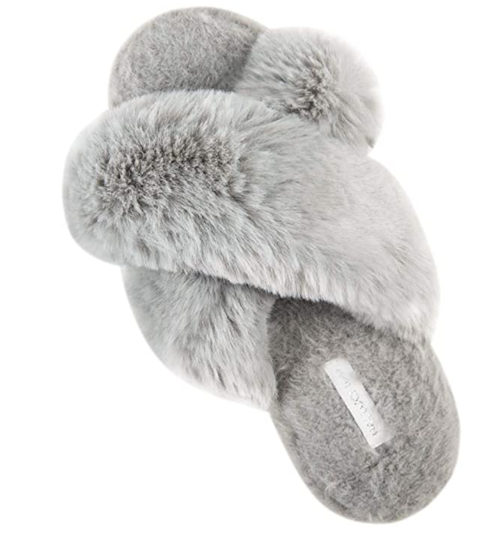 I like a fuzzy slipper year round to wear on our chilly hardwood floors and these ones are the bees' knees. Look at that fluff! Anyone would appreciate getting these (especially me)!