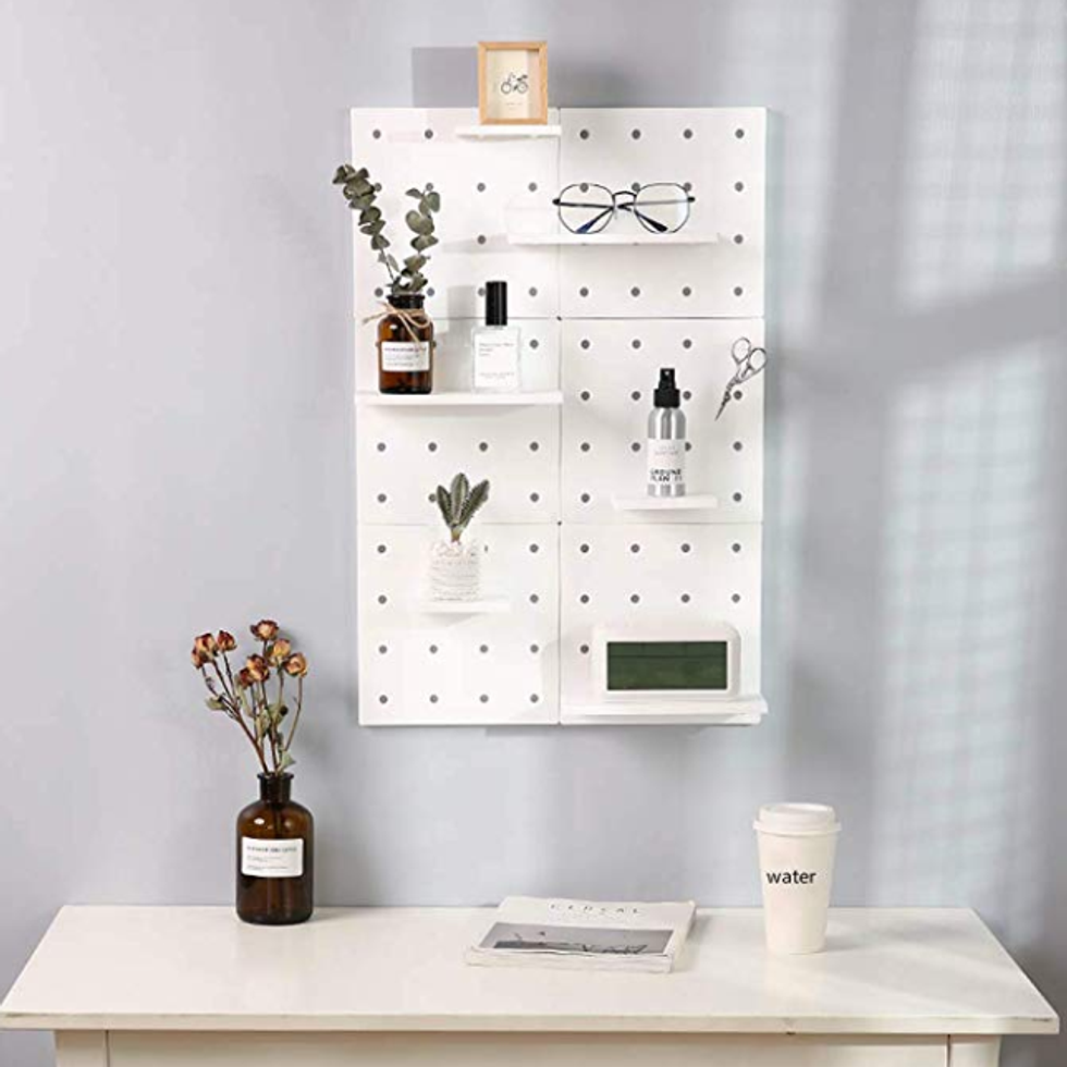 This office-appropriate pegboard allows you to customize your storage solutions. Add a shelf to hold important items or a basket to store some of your smaller nick-nacks.Trending