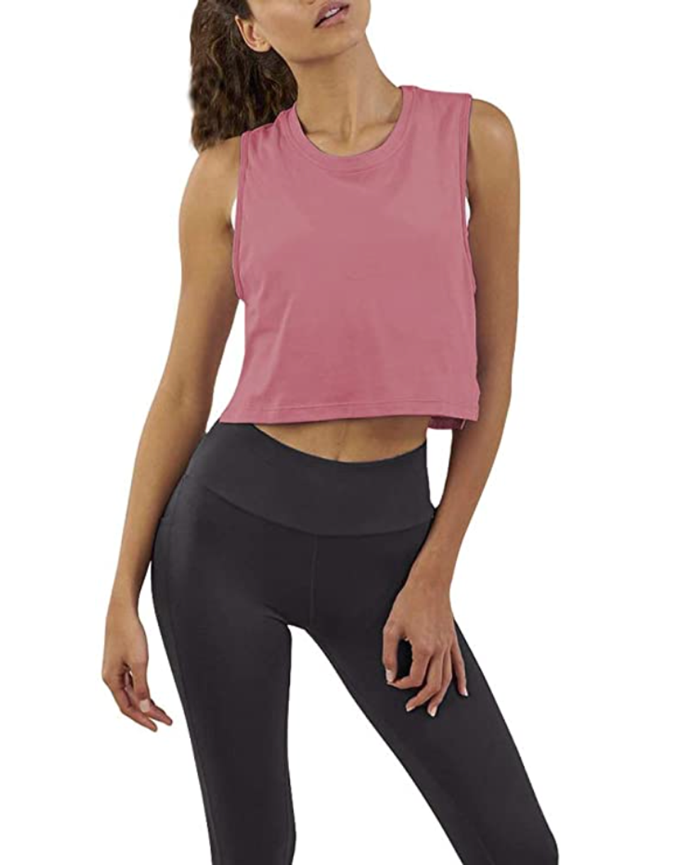 I like this four-pack of workout crops because they come in a bunch of different colors to match any leggings. They're just long enough that they pair perfectly with high-waisted jeans on casual days out, and the hint of spandex lets them move with me — not against me.