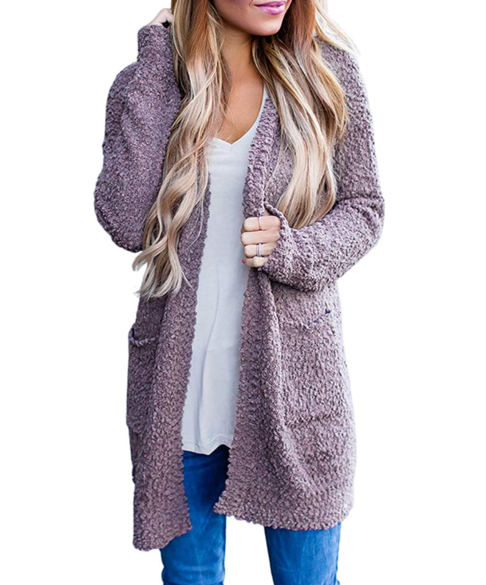 It doesn't matter whether I'm on the couch or outside — either way I'll wrap myself in this fuzzy cardigan for some extra warmth. The sleeves are tapered to help keep the wind out, and the slouchy fit is flattering on everybody.