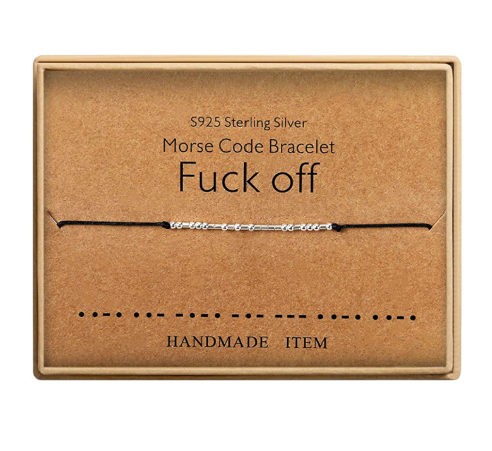 Do you wish the whole world would F off sometimes? Me too — that's why I like to wear this morse code bracelet when I'm feeling particularly ornery. It's made from sterling silver, and each one comes packaged in a fun gift box.
