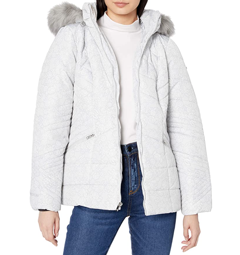With a half-zip closure to keep the wind out all season long, this half-zip from DKNY is a must-have. I like to wear it with dark leggings or jeans, and the cord at the waist lets you adjust how it fits.
