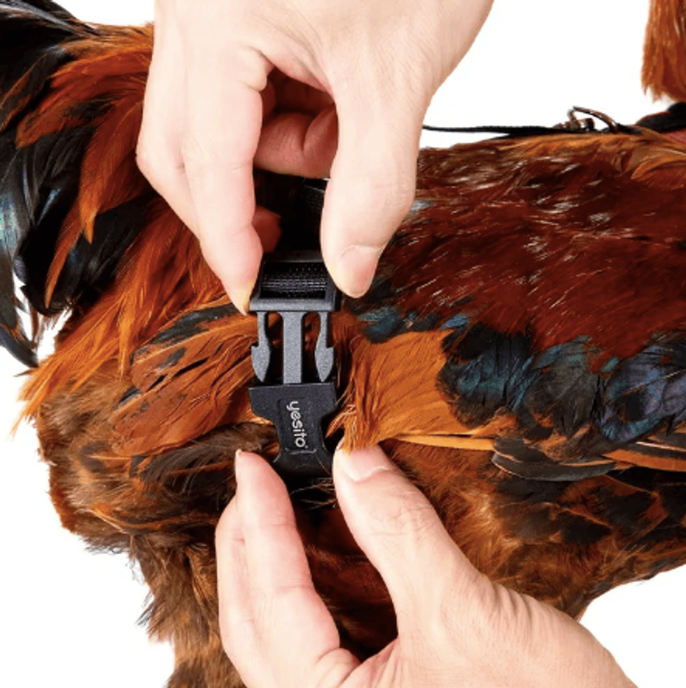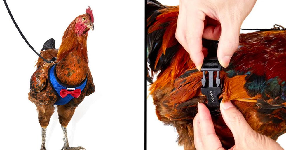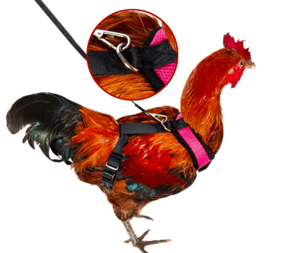 They're selling a chicken harness which can enable you to safely get your chicken across the road - and anywhere else that you may need them to walk.It's designed to be super comfortable for your bird.