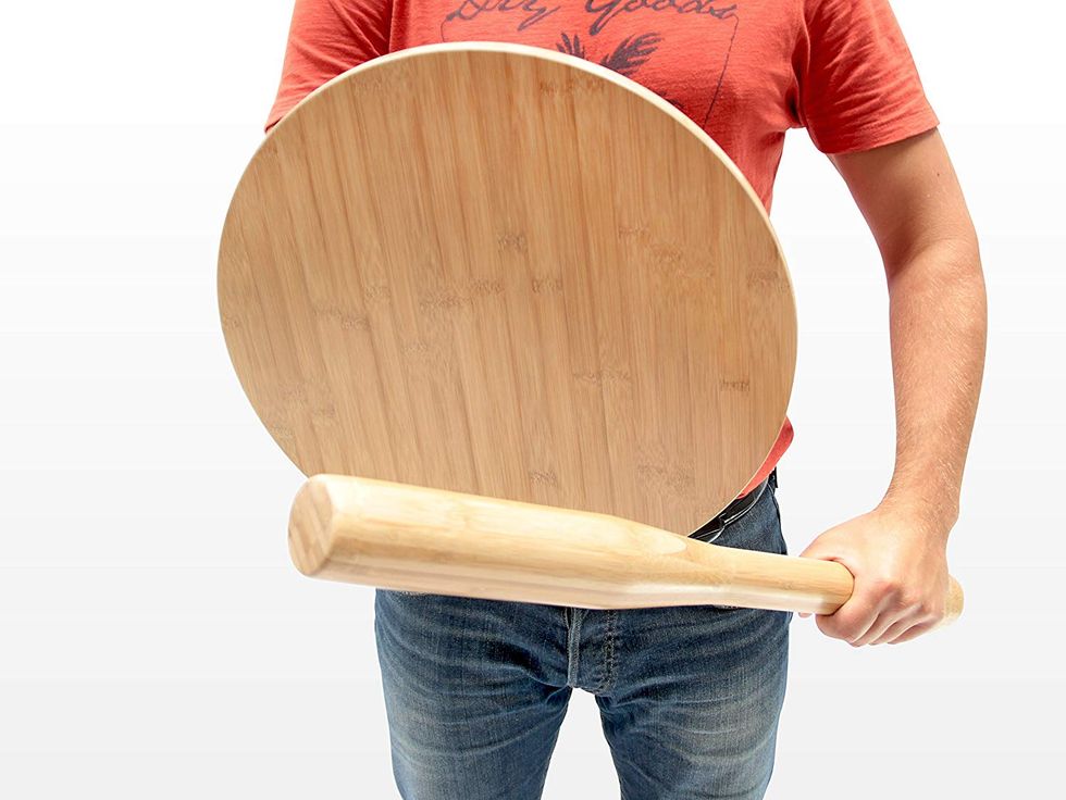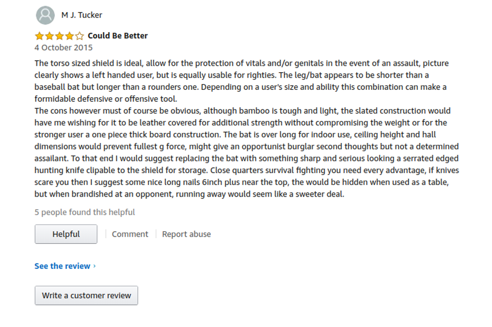 Made out of bamboo, the table is waterproof and easy to clean... it's all you need in your nightstand-cross-weapon.Just as you'd expect, the reviews were pretty hilarious...