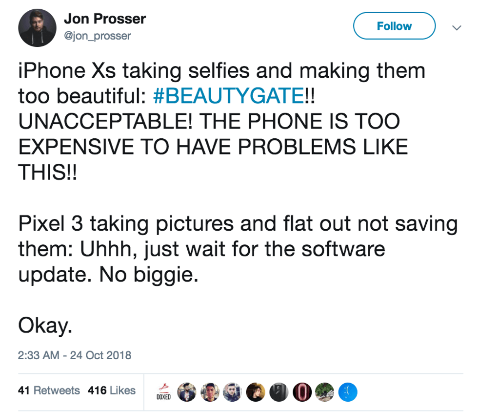 Because it tells us that Apple didn't deliberately include any kind of beauty mode in the iPhone XS and XS Max cameras, and that it's the visual noise reduction features which are the problem.Saying that, it still shouldn't really be an issue