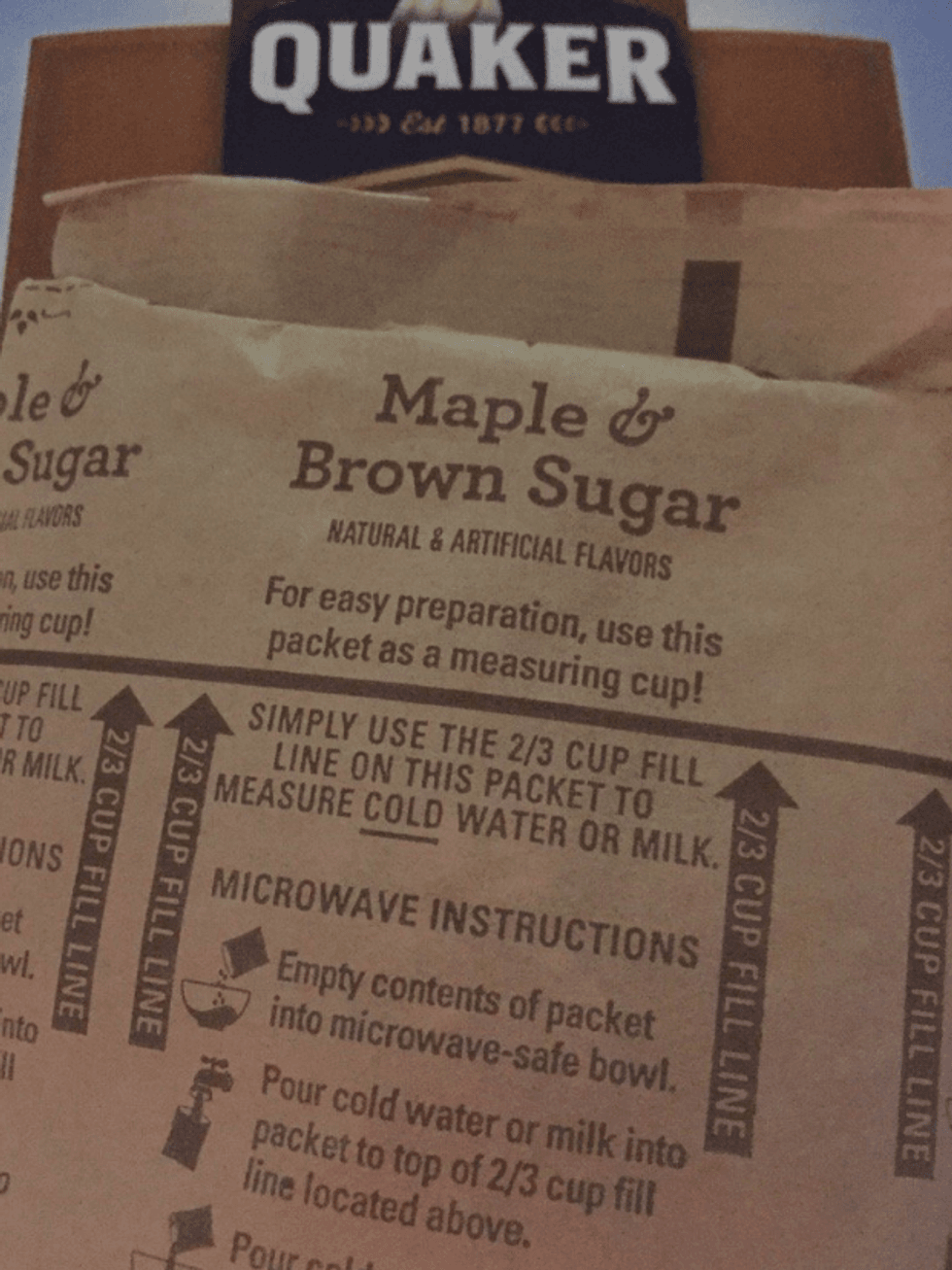 Want some oatmeal with your bagel? Take a good look at the packet your instant oatmeal comes in. It's lined with plastic. That's because you're supposed to be able to use it to measure the water in it! There's even a line to help you measure the right amount.