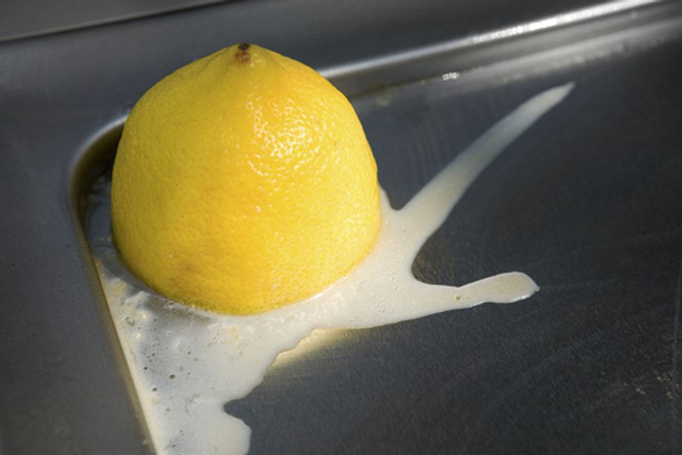 In addition to being a delightful garnish for beverages, lemons are also super great tools for cleaning and polishing stainless steel. Simply cut a lemon in half, rub it on your sink, and dry with a soft cloth. Voila! Water stains are completely eliminated!