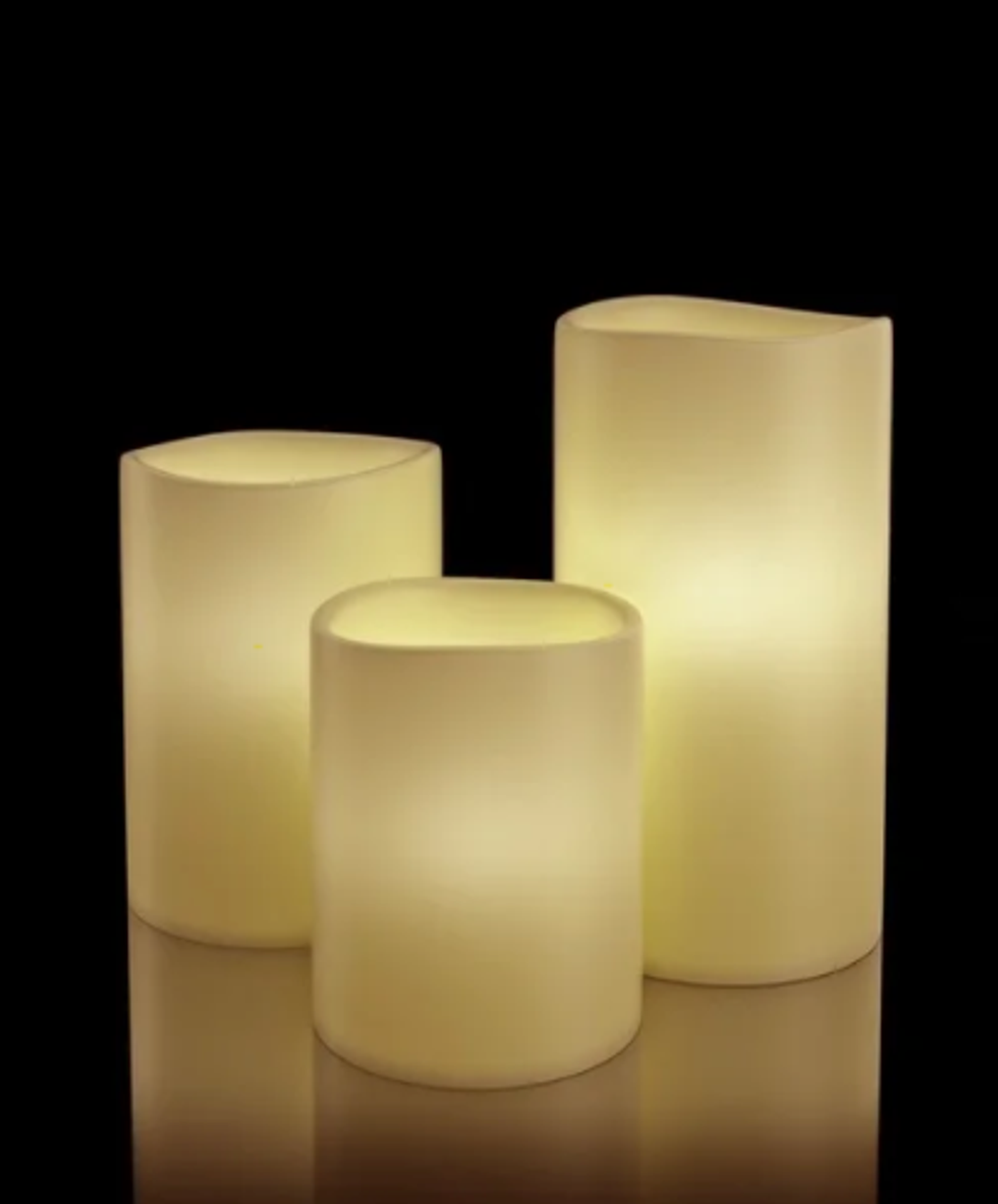 If you like falling asleep to the sound of rainfalls or stormy nights, then this is for you. It has 16 sounds of ambient nature for you to enjoy while you drift off into peaceful sleep. Available on Overstock.This LED Flameless Candel Set