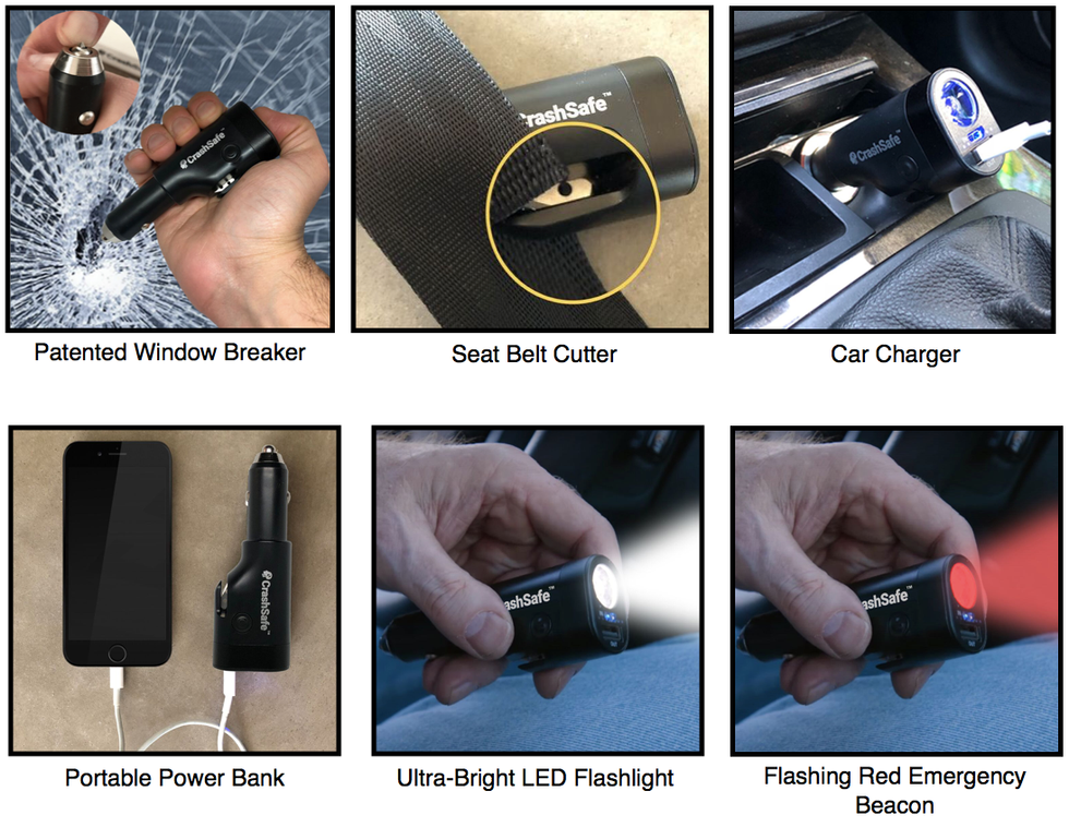 It’s called CrashSafe, and whether your car is sinking, on fire, upside down, or simply broken down on the side of the road, this ‘all-in-one’ car emergency tool will be your best friend in those most desperate times.