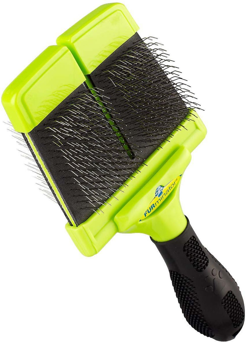 Trusted review: "The brush head is flexible & contours to your dog's body. Gets into those hard to reach places & you don't need to go over a spot til your dog bleeds! Ideal for dogs who always get sticks, twigs, leaves, etc. stuck on their fur cause it detangles & pulls it out gently. My dogs love to be groomed now & even do an "Oh that's the spot" leg raise!"