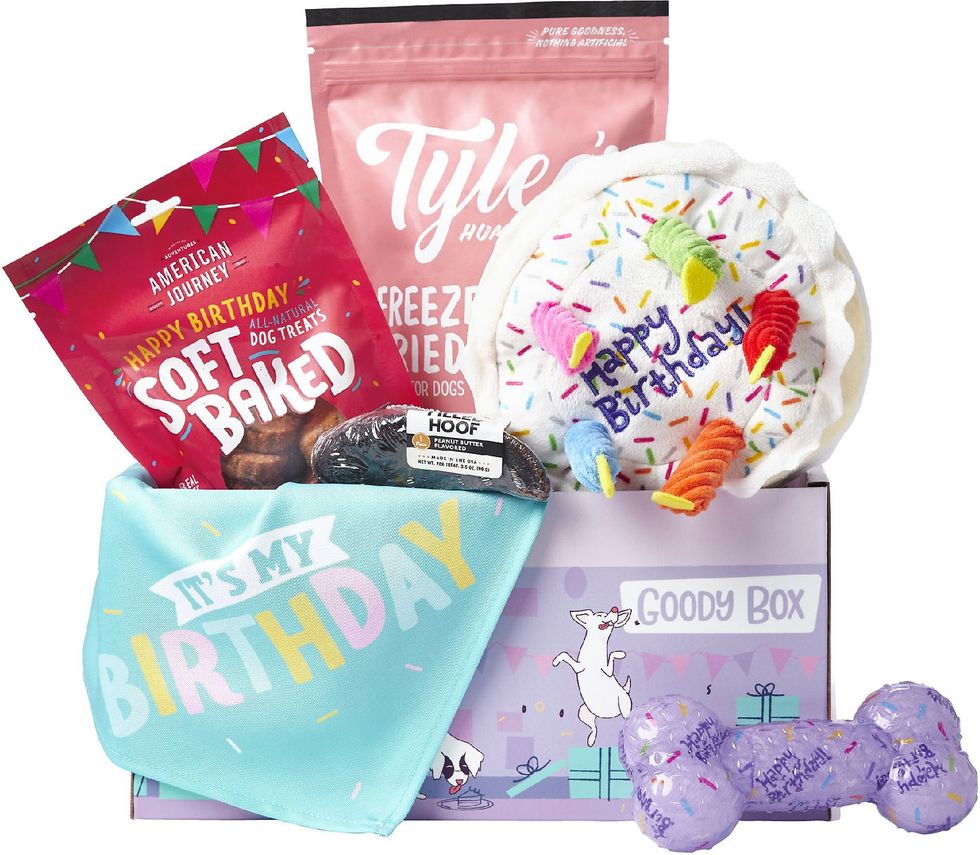 Why only get an essential birthday bandana when you can spoil your dog rotten with an entire box of toys and treats on their special day?