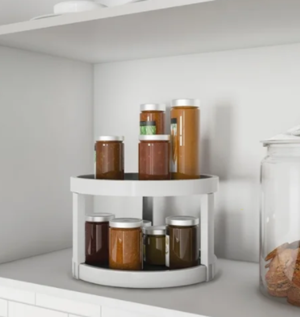 I've had some version of a Lazy Susan in every home I've lived in. They're helpful in cabinets or cupboards that are just too hard to reach.Tong with the Windows.