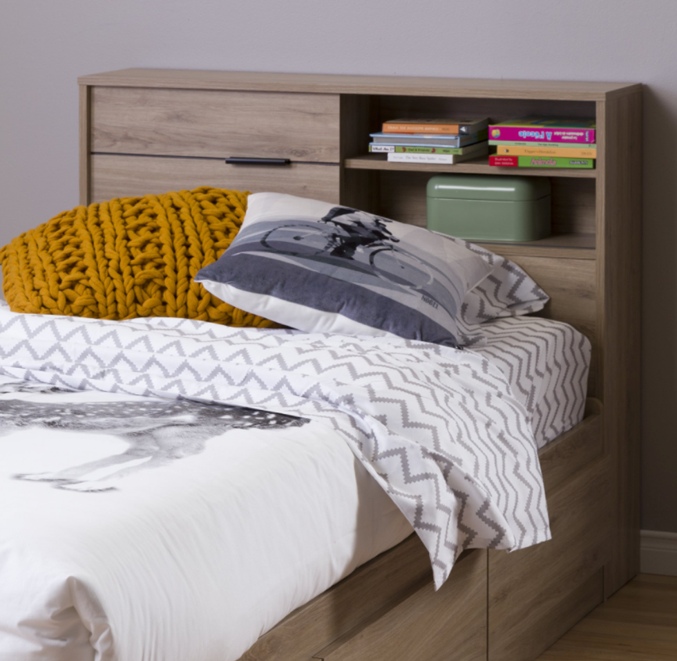 Who would've thought that a headboard would be such a space-saver? This doubles as a storage area and a built-in bookshelf.That's a wrap!