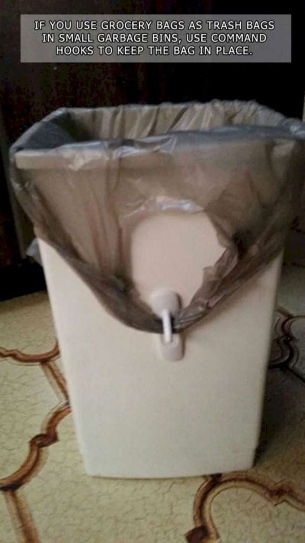 There's nothing more annoying than going to throw something away and having the entire bag fall into the trash can instead. Use a couple of Command hooks to hold the plastic bags in place, and you'll never have that issue again!Create a storage space for your car