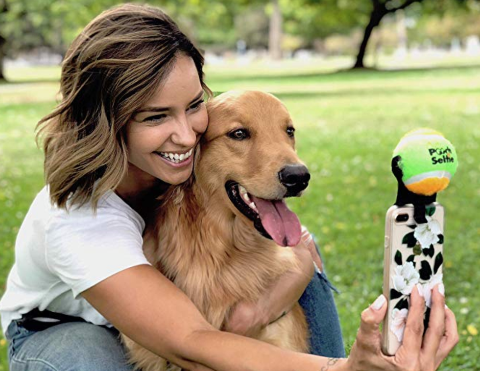 Remember when you were getting a school picture taken, the photographer had a funny prop on top of the camera to coax a smile? This dog selfie stick is the same idea and is much more effective than a manky old puppet! It attaches to the top of your phone and holds a colorful ball that attracts your dog's laser focus while you snap away. (The customer images in reviews are so priceless, I just impulse-bought it for my doggo-obsessed friend!)