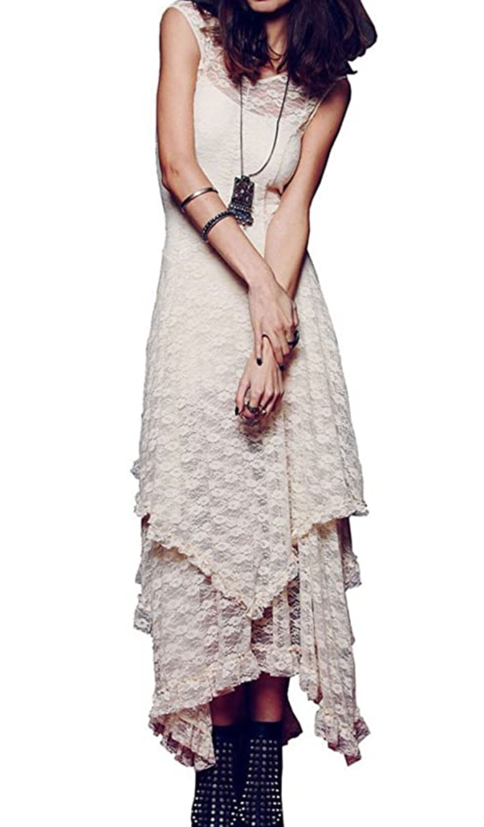 Do you want to look effortlessly cool, like 70s era Stevie Nicks? Of course you do, who doesn't! This lace dress is an easy outfit you can throw on to get in touch with your feminine side. It's easy to toughen up, too - just pop a leather moto jacket over the top for just the right mix of punk and boho.