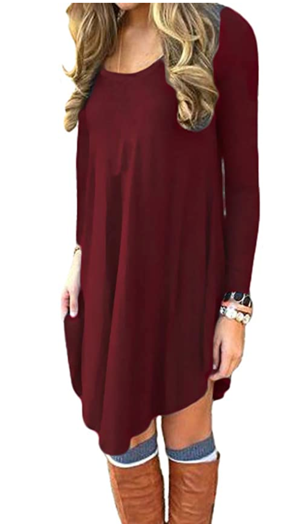 I need a versatile dress to wear all year-round, and this tee shirt dress is just the thing! It comes in a bunch of colors and patterns, and you can easily dress it up or down with different shoes and accessories. Oh, and it has nearly 19,000 rave reviews, so there's that!