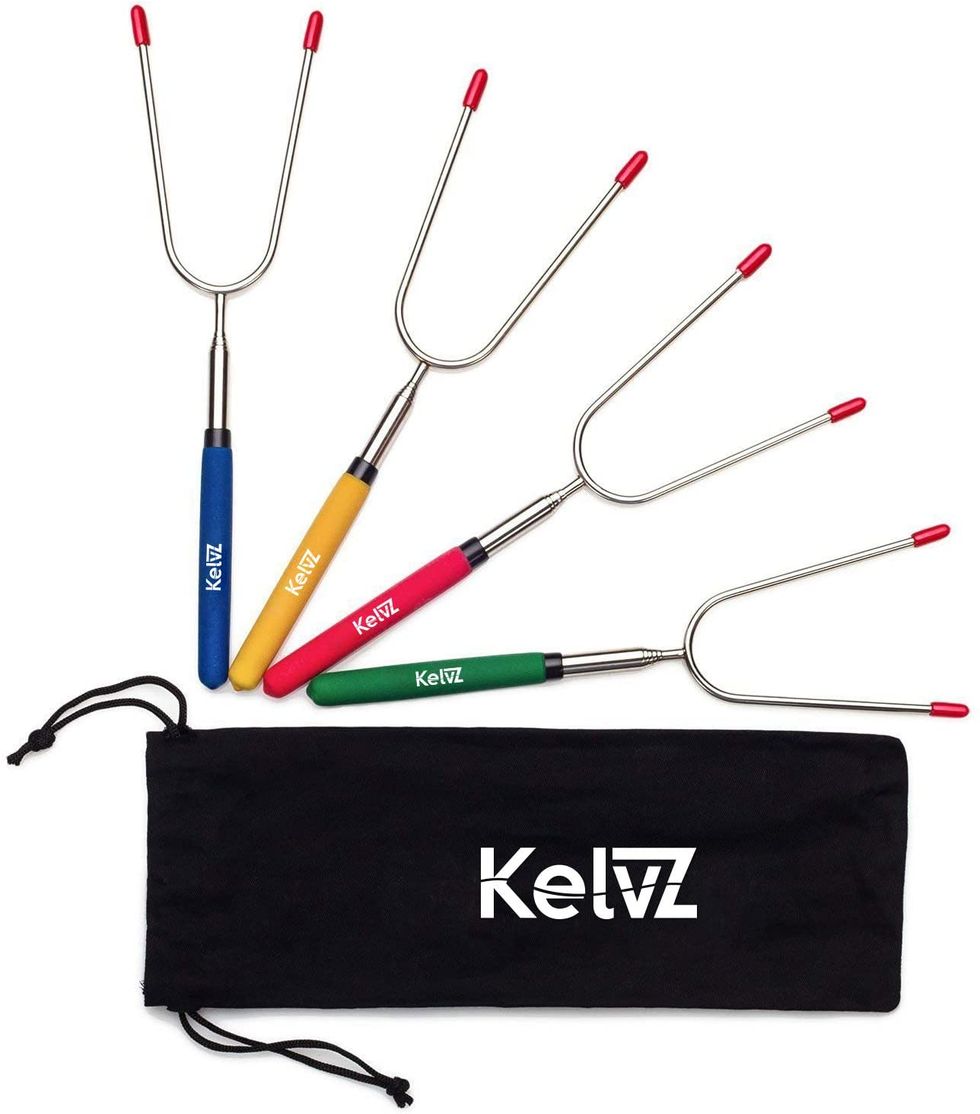 And while you of course still have that option, I prefer to use these special roasting sticks, which have a telescoping design that allows you to get far enough away from the fire to stay comfortable and safe while still being able to give your 'mallow a primo roasting.