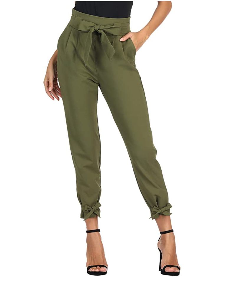 Not only do these fashionable pants fit true to size, but they're perfect for everything from happy hour to brunch. I like to wear a black bodysuit with the army green color, or if I'm feeling adventurous? Wear a yellow top with the navy version — trust me, the colors look good together.