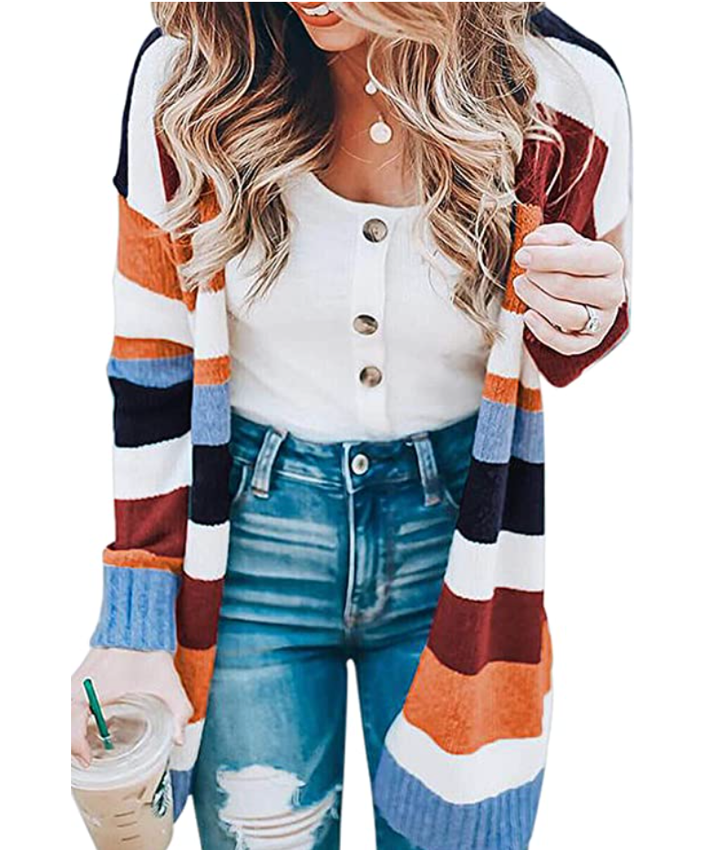 The colors in this striped cardigan just scream "FALL" to me, which is why I love to pair it with a yellow tee or pair of distressed jeans. And if you don't like the color? Don't worry — there are dozens of other options to choose from.