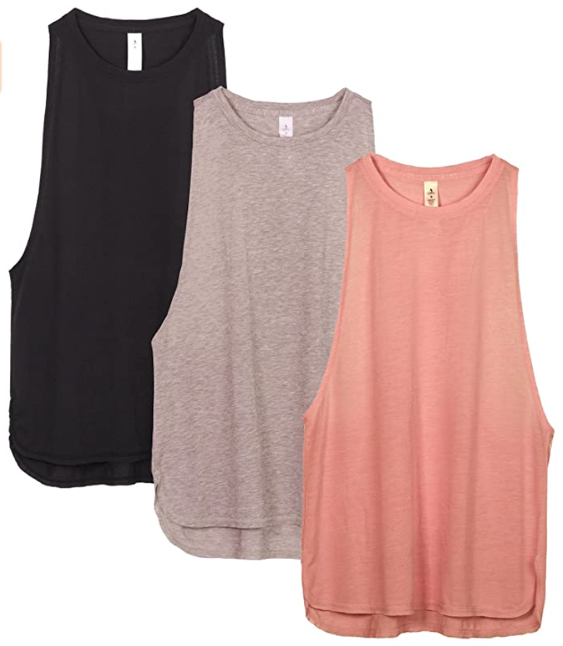 Not a fan of crops? No problem — just grab these tanks instead. They're made from soft polyester that wicks away sweat as I exercise, and the racerback style shows off your colorful sports bra.