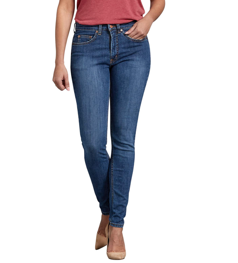 It doesn't matter what body type you have — skinny jeans are flattering on everybody, and these ones from Dickies are my favorite. Why? They're softer than other jeans I own, and they stretch with my body so that I'm not flashing anyone when I bend over.