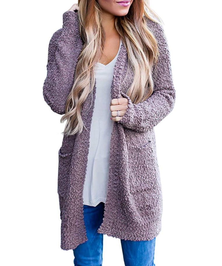 It doesn't matter whether I'm on the couch or outside — either way I'll wrap myself in this fuzzy cardigan for some extra warmth. The sleeves are tapered to help keep the wind out, and the slouchy fit is flattering on everybody.