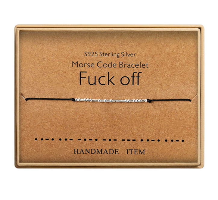 Do you wish the whole world would F off sometimes? Me too — that's why I like to wear this morse code bracelet when I'm feeling particularly ornery. It's made from sterling silver, and each one comes packaged in a fun gift box.