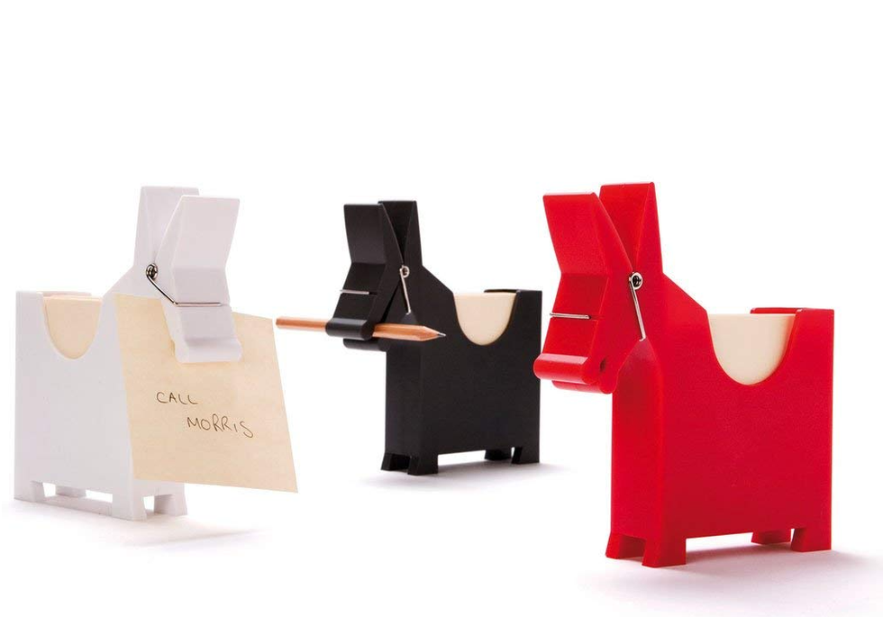 This little donkey desktop note dispenser keeps brilliant ideas and urgent reminders at your fingertips so you stay on track and on task. He can also hold a writing utensil and note in his mouth so you can keep important notes in plain sight. You can choose from black, white or a punchy red to jazz up your workspace!